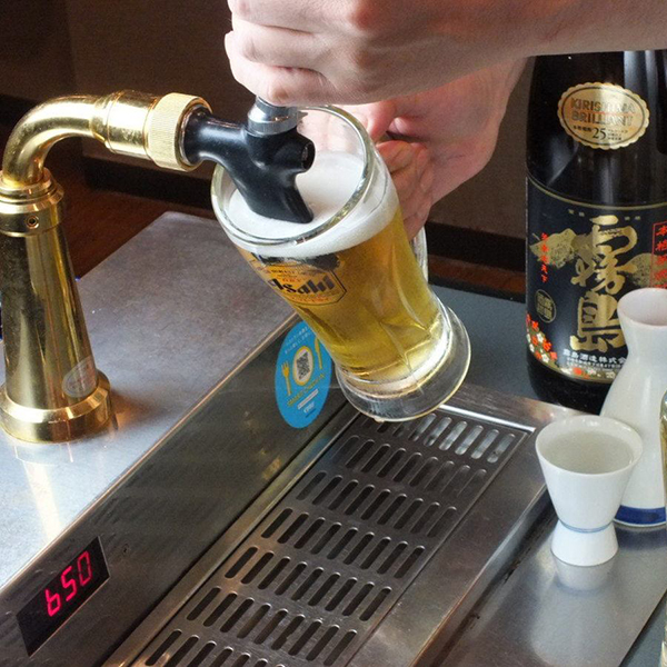 横浜東口店はビールディスペンサー発祥の地!ビールサーバーがテーブルに設置してあるので、自分たちで思いのままにビールが注げます。
